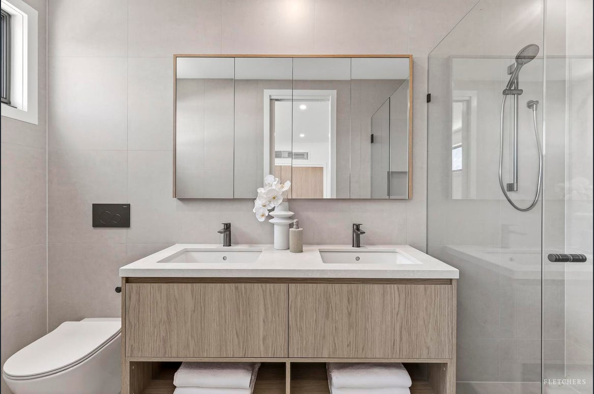 Designer kitchens complement the crisp coastal palette with luxe stone benchtops, premium Bosch appliances and minimalist joinery, while accommodation is equally refined. An elegant main bedroom with ensuite, second robed bedroom and chic, fully tiled bathroom provide stylish comfort for both permanent living and weekend escapes.