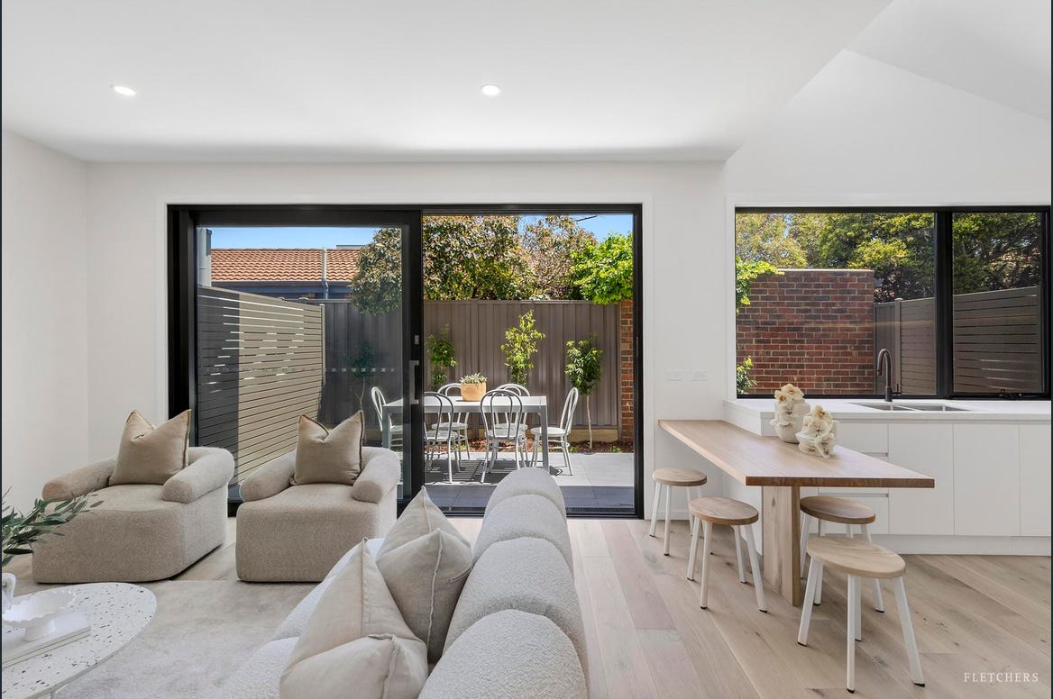 Offering a choice of single and double-storey layouts, each residence is anchored by a light-filled open-plan living and dining domain. Here, rich timber flooring, bold glazing and streamlined detailing reflect the home’s modernist influence, seamlessly connecting to a private alfresco courtyard for relaxed entertaining.