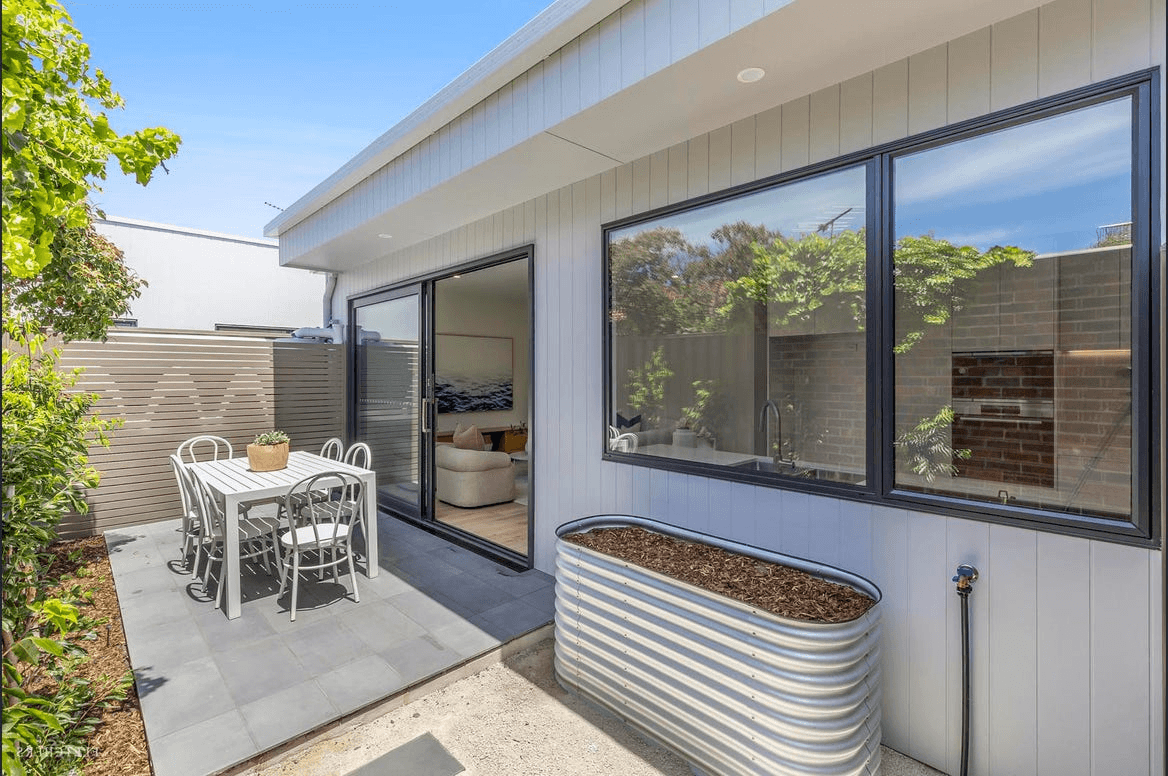Offering a choice of single and double-storey layouts, each residence is anchored by a light-filled open-plan living and dining domain. Here, rich timber flooring, bold glazing and streamlined detailing reflect the home’s modernist influence, seamlessly connecting to a private alfresco courtyard for relaxed entertaining.